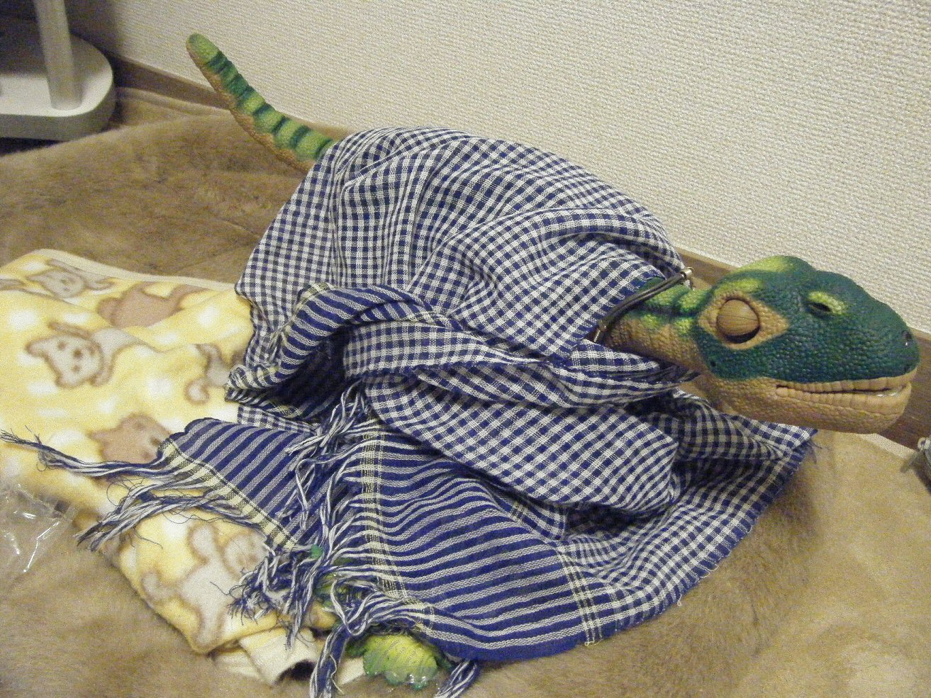 実家の犬用毛布を使用・・・。